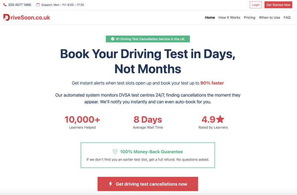 👉Visit DriveSoon now to find your cancelled driving test slot